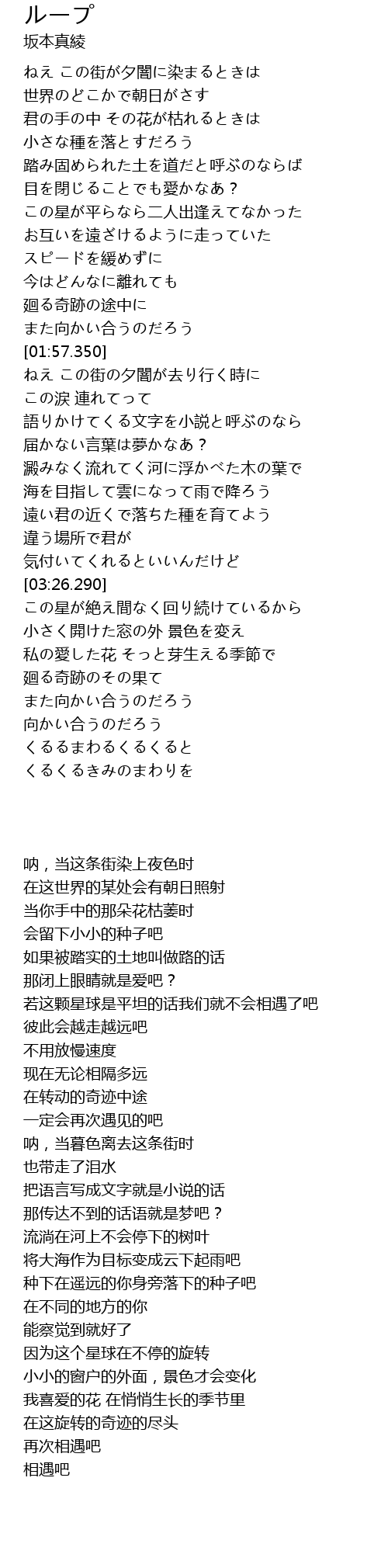 | [01:16.810] | この星が平らなら二人出逢えてなかった |