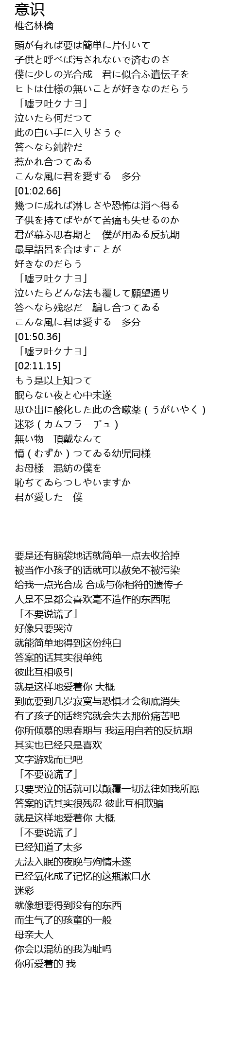 | [02:16.69] | 无法入眠的夜晚与殉情未遂 |