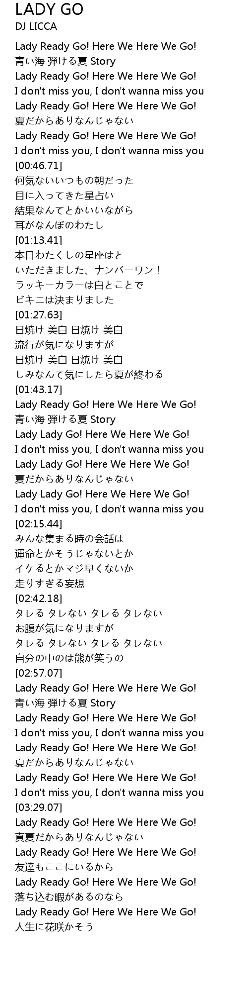 | [03:04.62] | Lady Ready Go! Here We Here We Go! |
