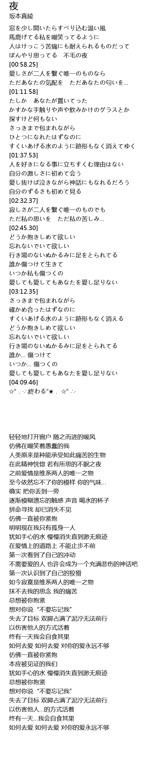 | [00:53.69] | ぼんやり思ってる 不毛の夜 |