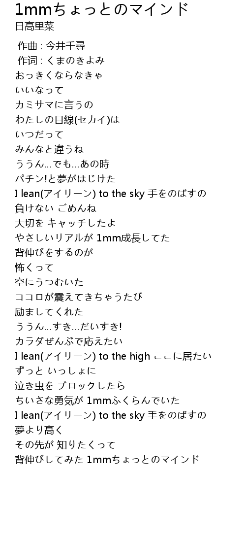 | [03:34.39] | 背伸びしてみた 1mmちょっとのマインド |