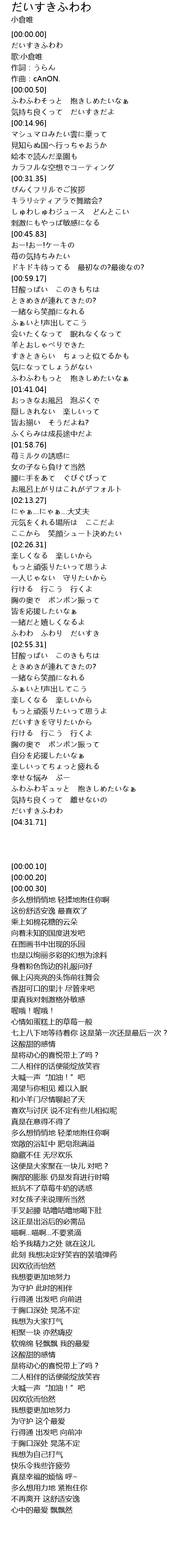 | [02:52.41] | ふわわ ふわり だいすき |