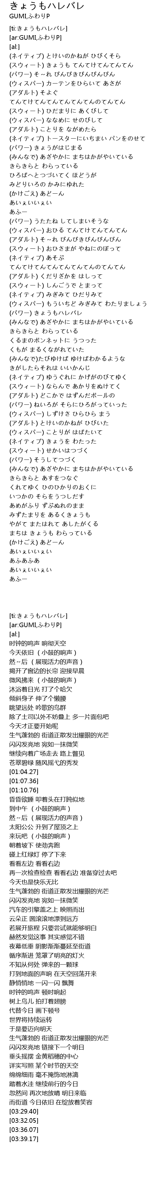 | [01:41.33] | (パワー) きょうもハレバレ |