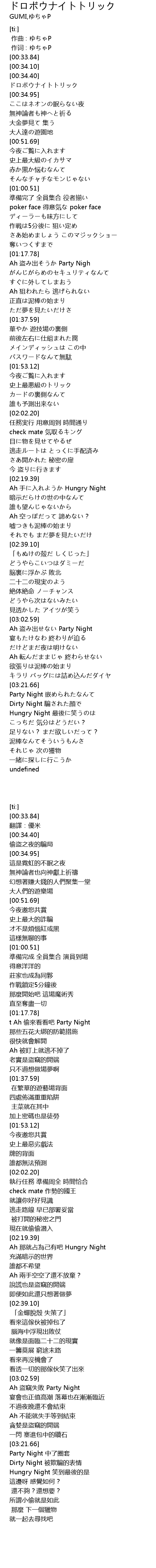 | [00:34.70] | ドロボウナイトトリック |