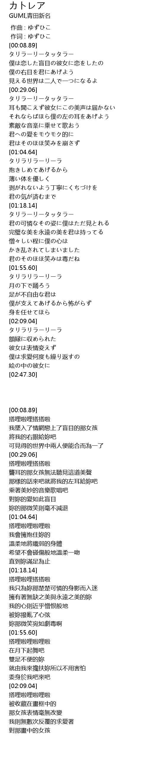 | [00:16.12] | 僕は恋した盲目の彼女に恋をしたの |