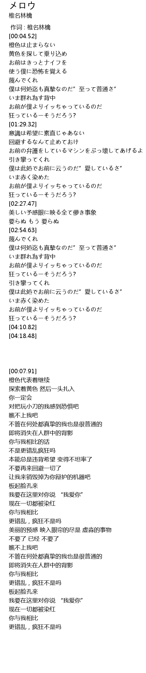 | [04:02.16] | お前が僕よりイッちゃっているのだ |