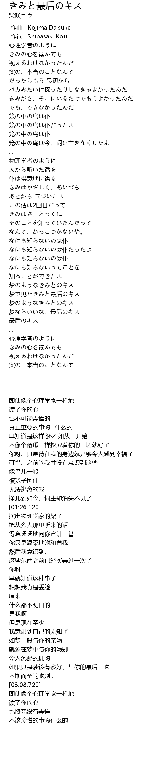 | [02:52.250] | 梦で见たきみと最后のキス |