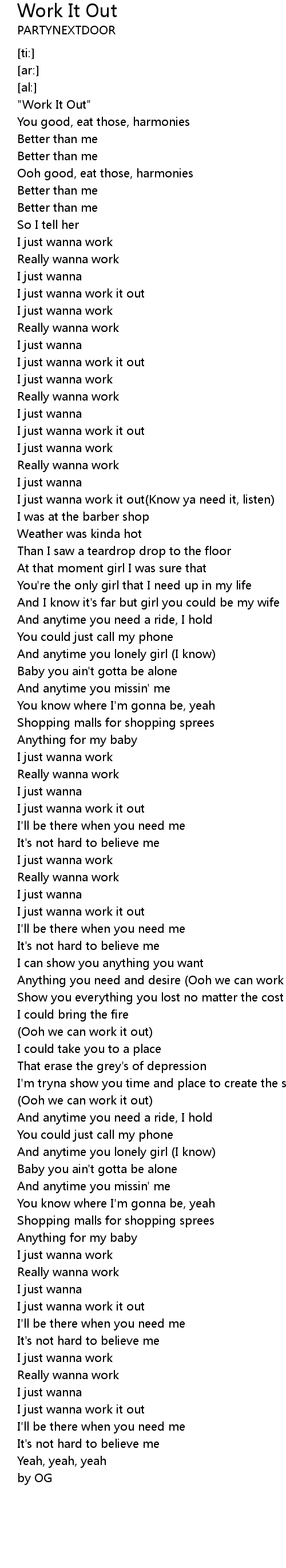 I just wanna work it out(Know ya need it, listen) |