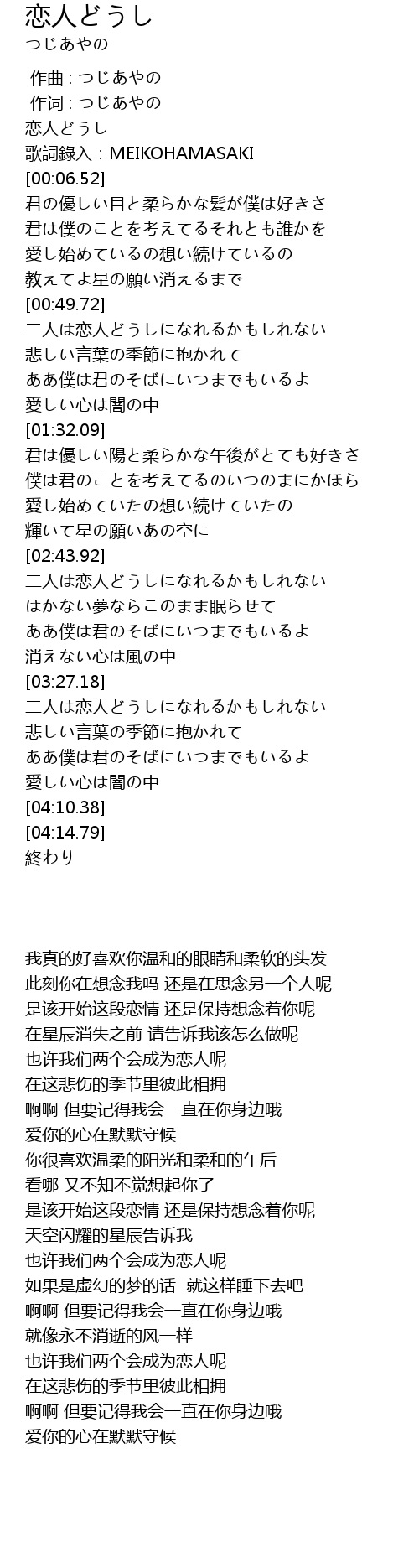 | [00:05.44] | ge ci lu ru: MEIKOHAMASAKI |