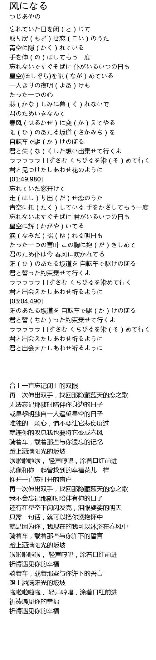 | [02:34.490] | 阳(ひ)のあたる坂道を 自転车で駆けのぼる |