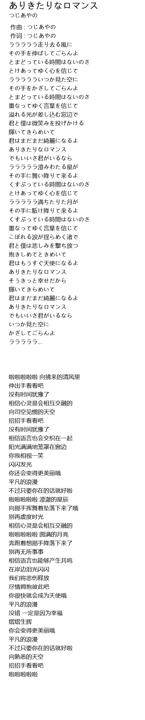 | [00:00.00] | 作曲 : つじあやの |