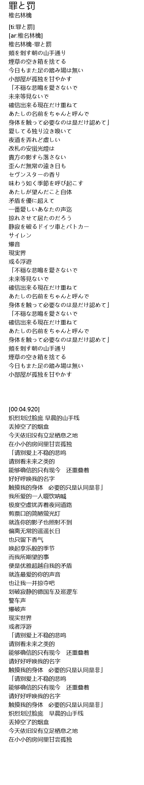 | [00:04.920] | 椎名林檎-罪と罰 |