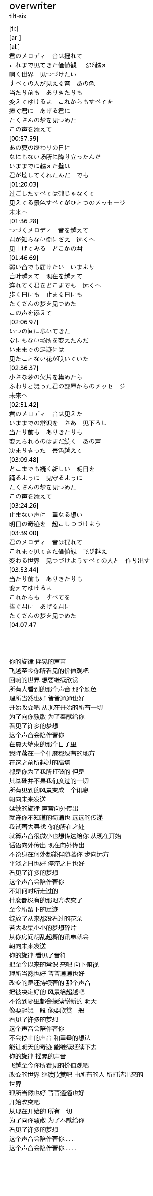 | [03:24.75] | 不会停止的声音 和重叠的想法 |