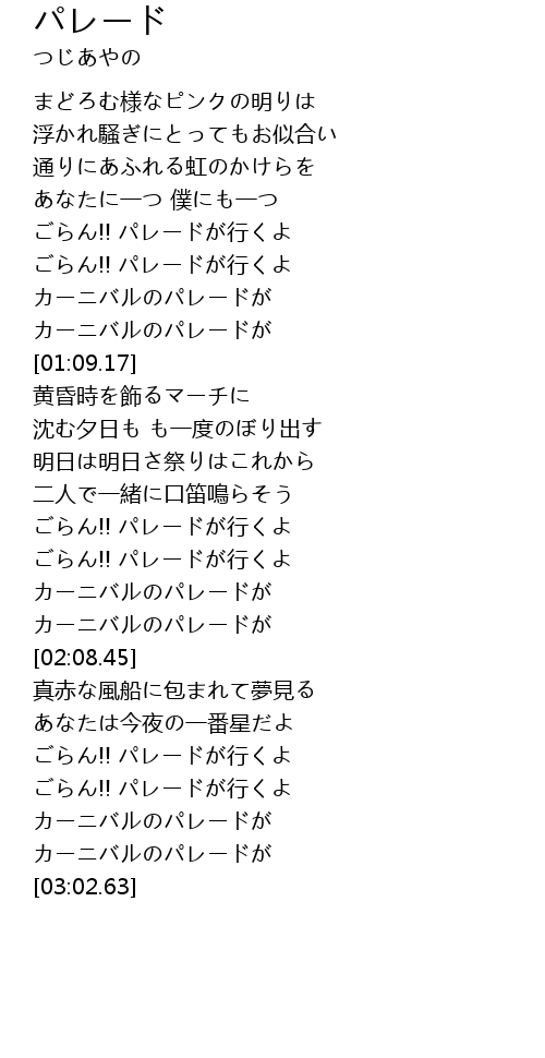 | [01:53.88] | ごらん!! パレードが行くよ |