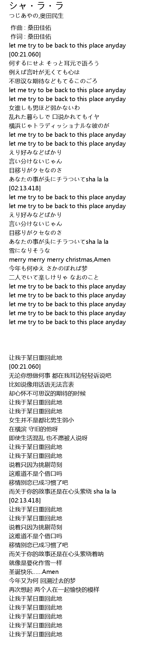 | [03:00.791] | あなたの事が头にチラついてsha la la |
