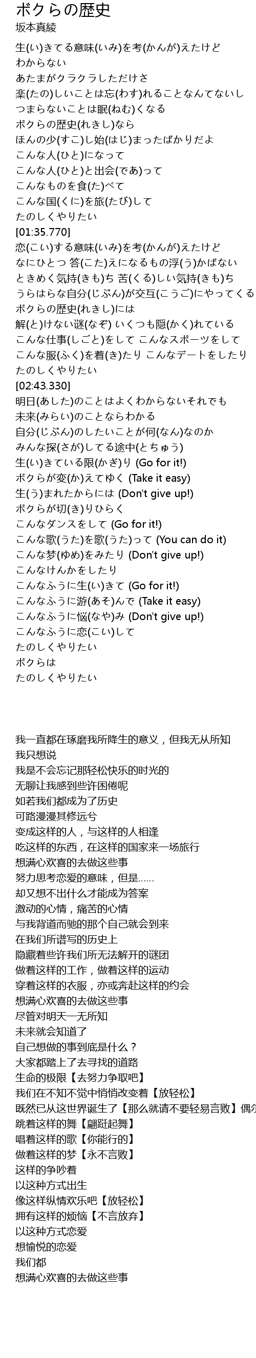 | [03:13.850] | 生(い)きている限(かぎ)り (Go for it!) |