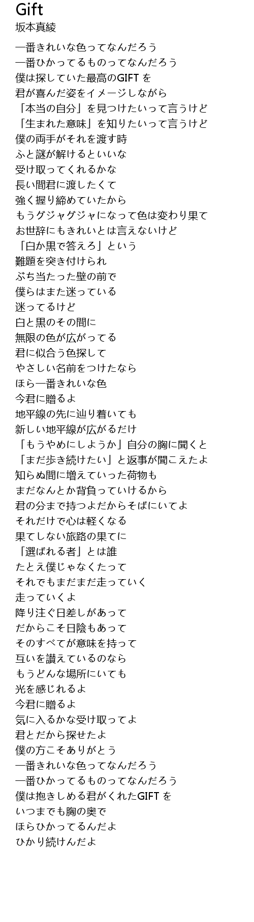 | [00:12.754] | 僕は探していた最高のGIFT を |