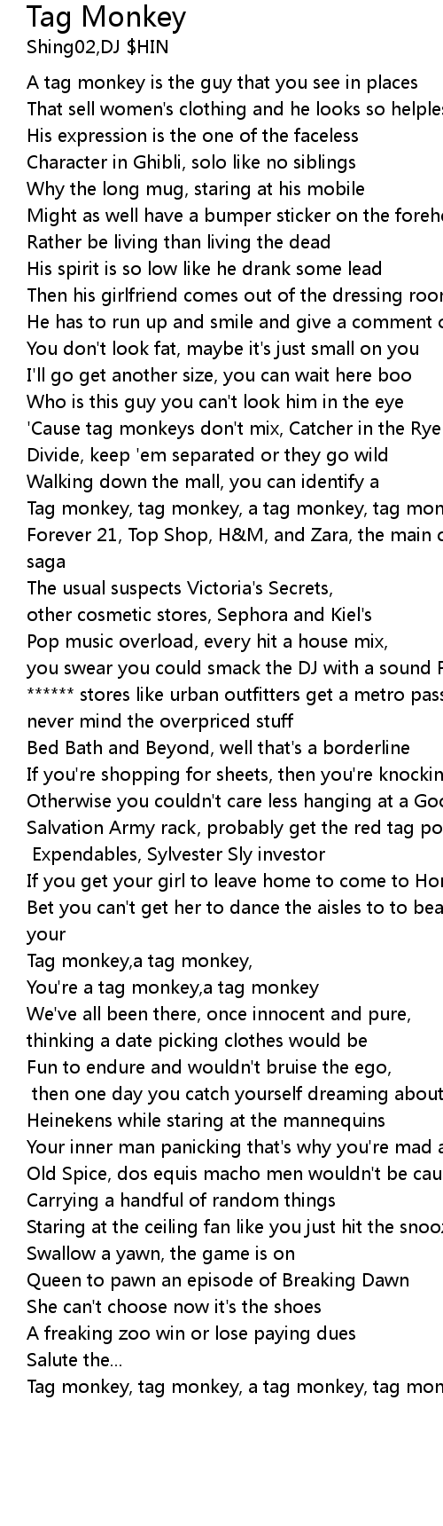 | [02:50.14] | Tag monkey, tag monkey, a tag monkey, tag monkey |