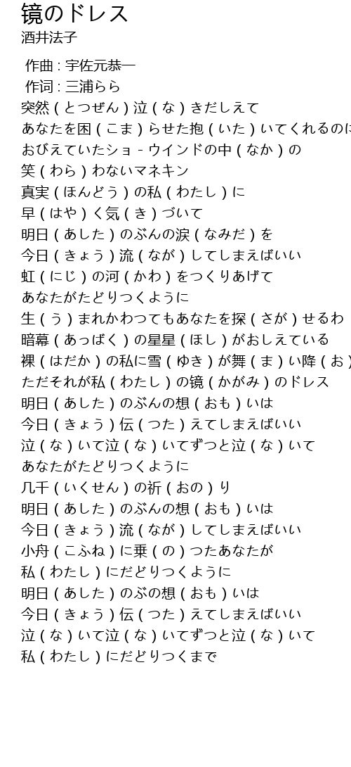 | [02:02.27] | ただそれが私(わたし)の镜(かがみ)のドレス |