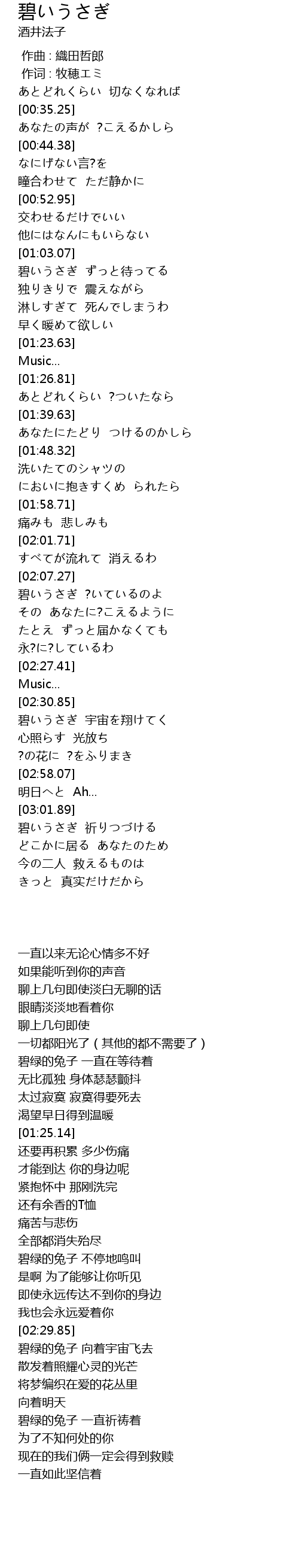 | [03:03.88] | 碧いうさぎ 祈りつづける |