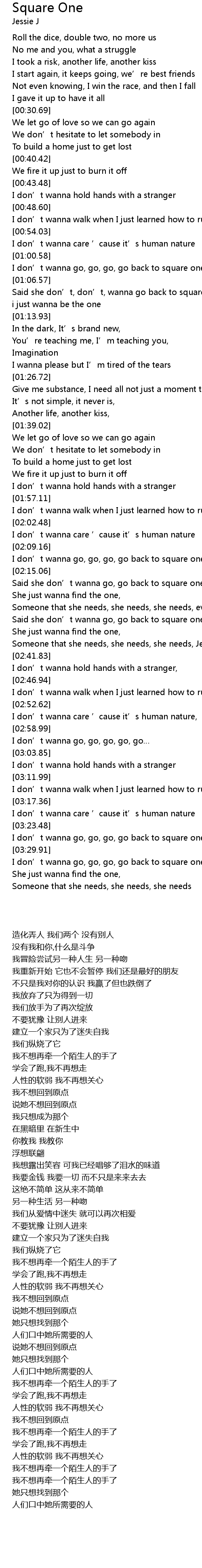 | [02:16.99] | Said she don’t wanna go, go back to square one, |