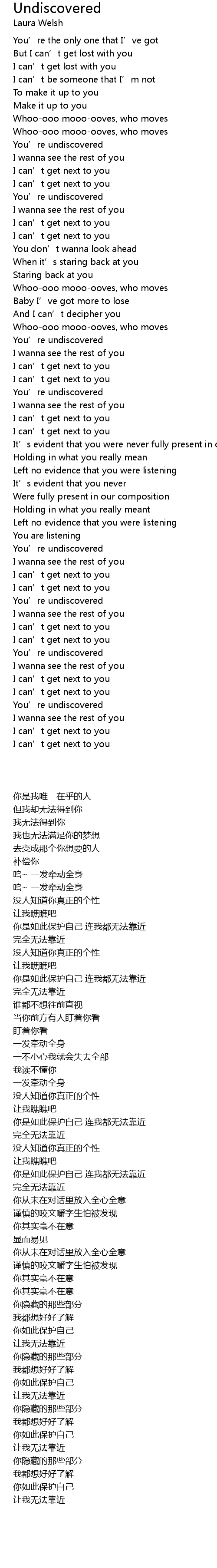 | [02:20.94] | You' re undiscovered |