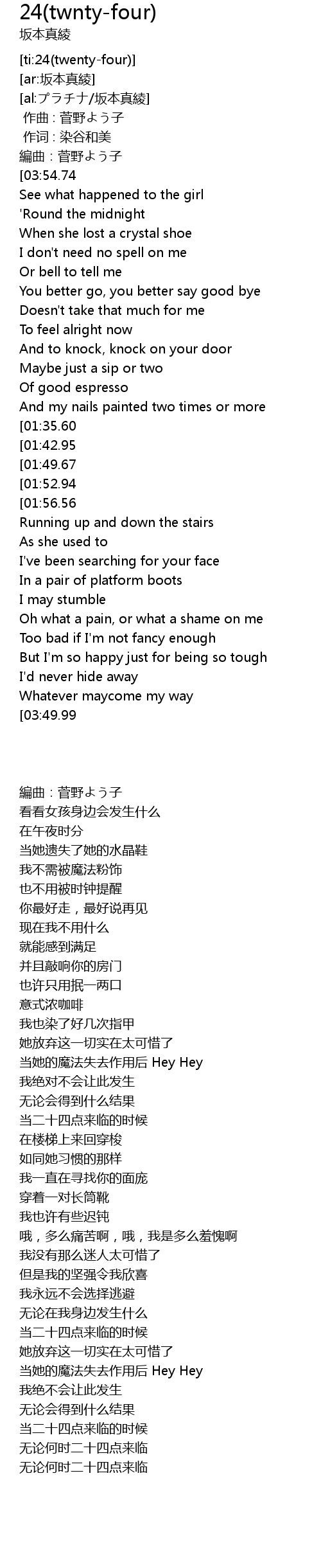 | [04:03.67][03:49.99][03:11.97] | Whenever it turns to be twentyfour |