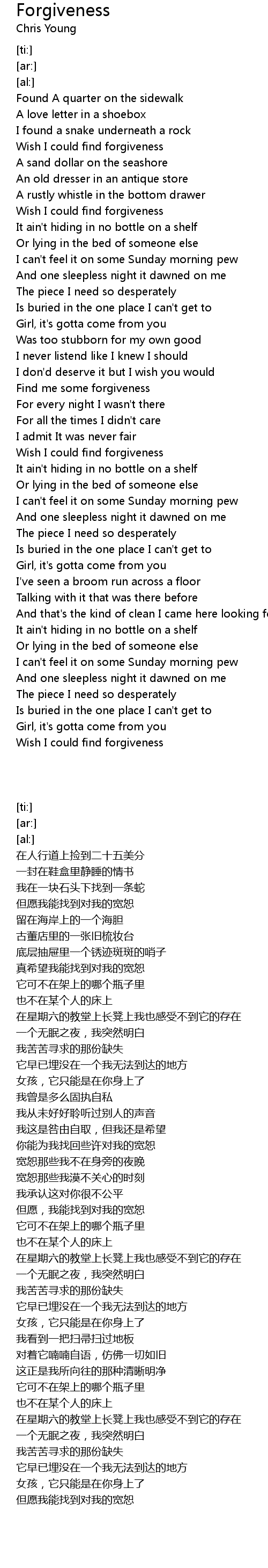 Find me some forgiveness |