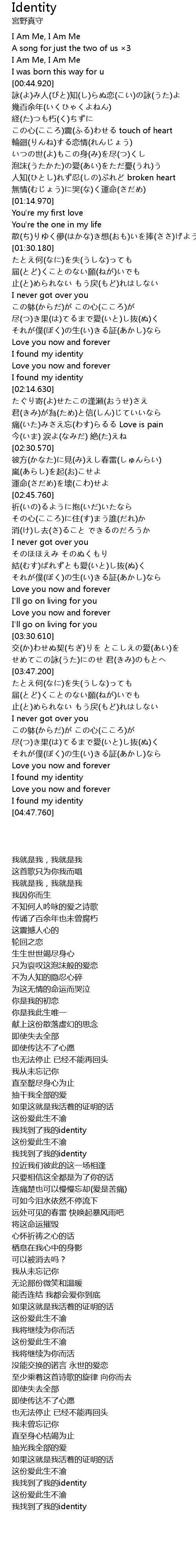 | [02:10.430] | 我找到了我的identity |