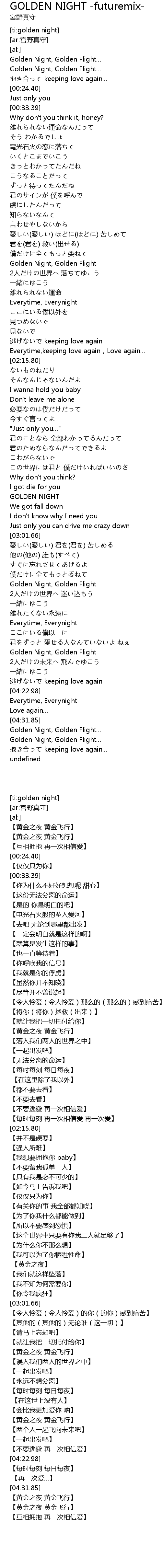 | [01:33.01] | Golden Night, Golden Flight |