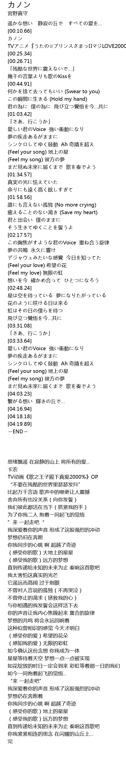 | [00:15.04] | TV动画《歌之王子殿下真爱2000%》OP |