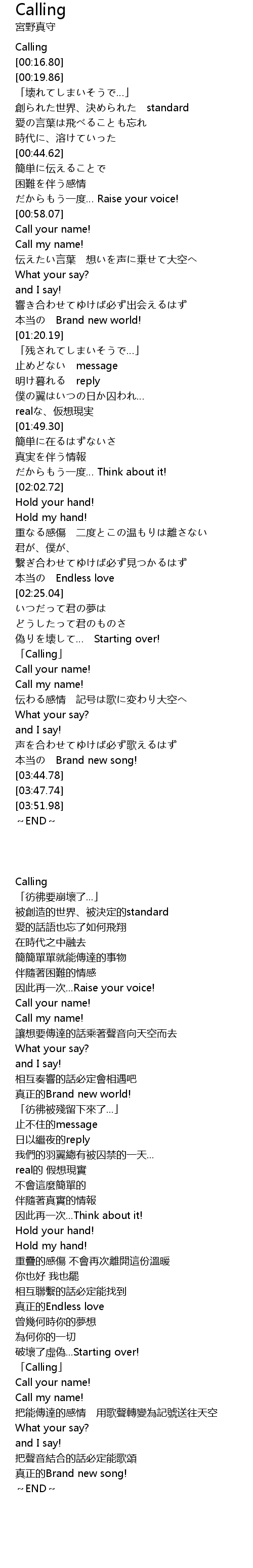 | [03:18.23] | 「Calling」 |