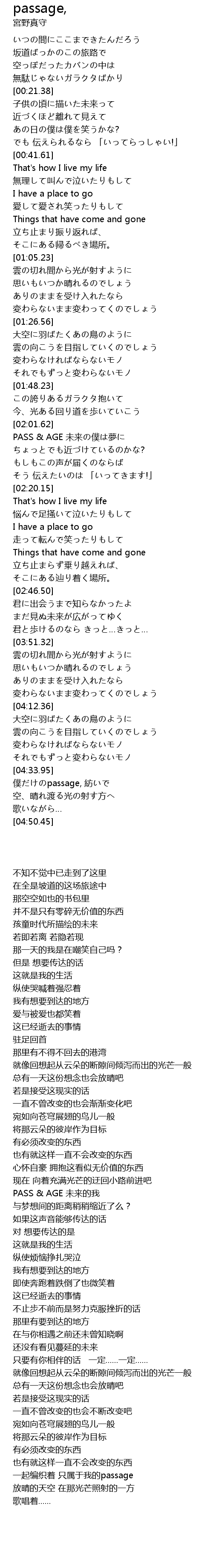 | [04:34.56] | 一起编织着 只属于我的passage |