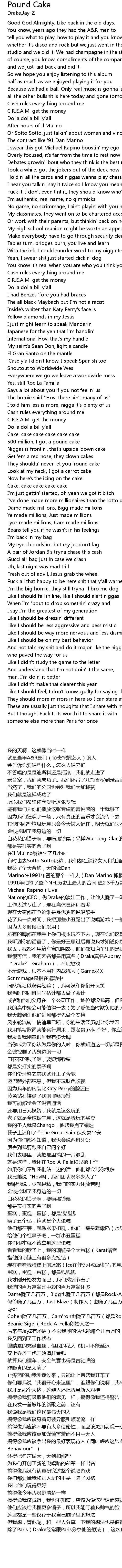 | [01:14.00] | Michael Rapino(Live Nation的CEO,做Drake的演出工作,让他大赚了一笔)这家伙要让我自负的要死 |