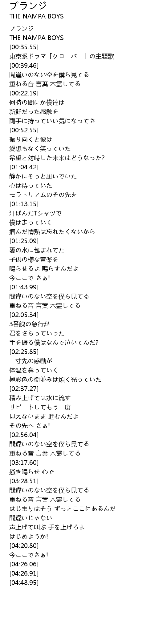 | [00:23.07] | プランジ |