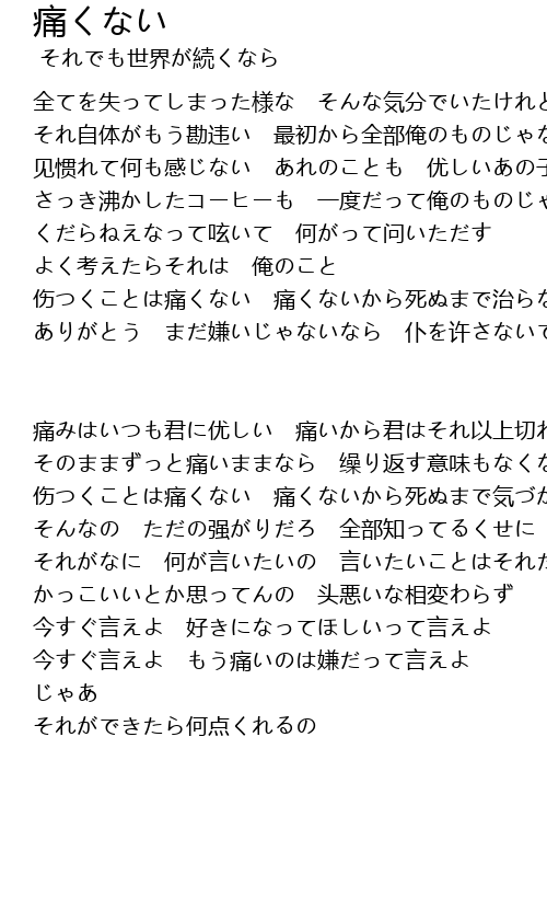 | 伤つくことは痛くない 痛くないから死ぬまで治らない | |
