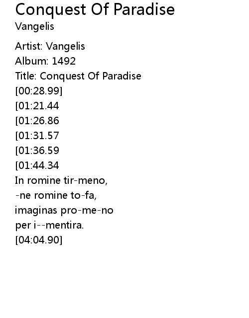 | [02:41.64][01:21.44][00:59.63] | In noreni per-i-pe, |