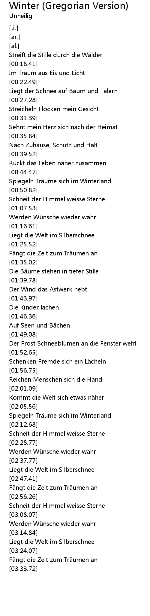 | [02:06.52] | Spiegeln Träume sich im Winterland |