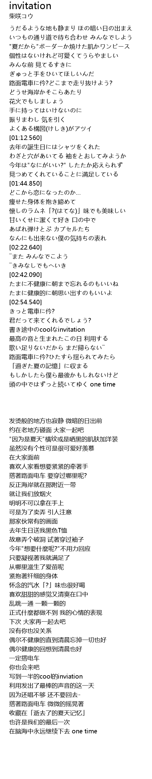 | [03:02.770] | 書き途中のcoolなinvitation |