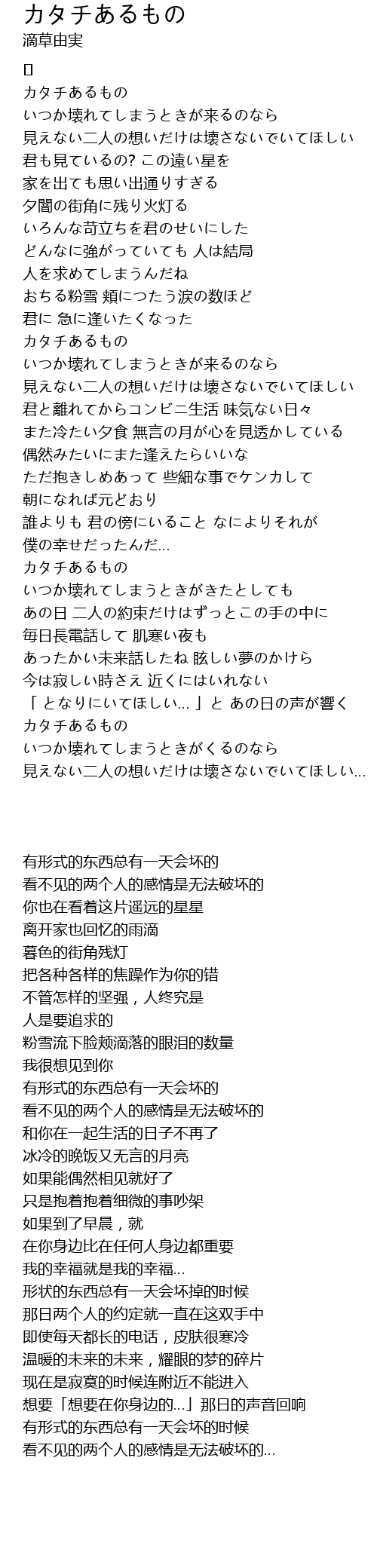 | [03:54.269] | カタチあるもの いつか壊れてしまうときがくるのなら |