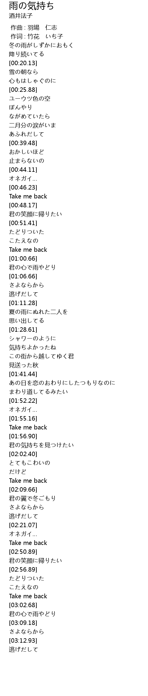 | [03:06.43] | 君の心で雨やどり |
