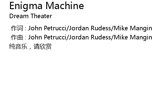 | [00:01.000] | zuo qu : John Petrucci Jordan Rudess Mike Mangini John Myung |