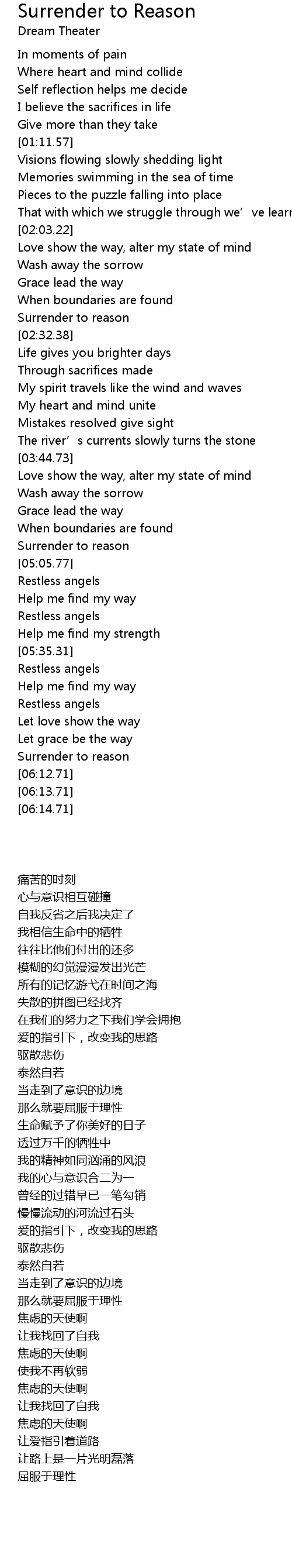| [06:06.59] | Surrender to reason |