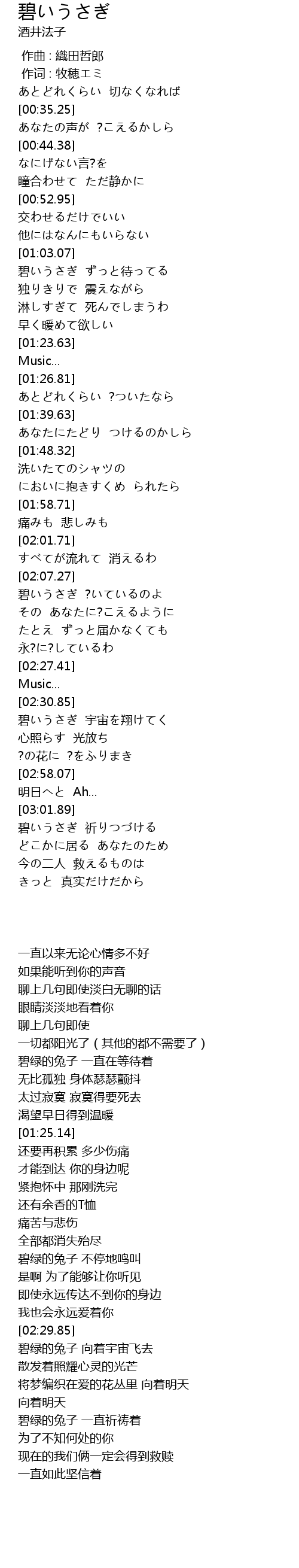 | [03:03.88] | 碧いうさぎ 祈りつづける |