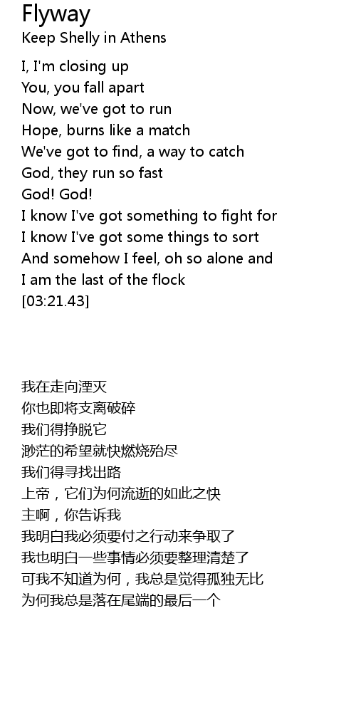 | [03:17.28] | I am the last of the flock |