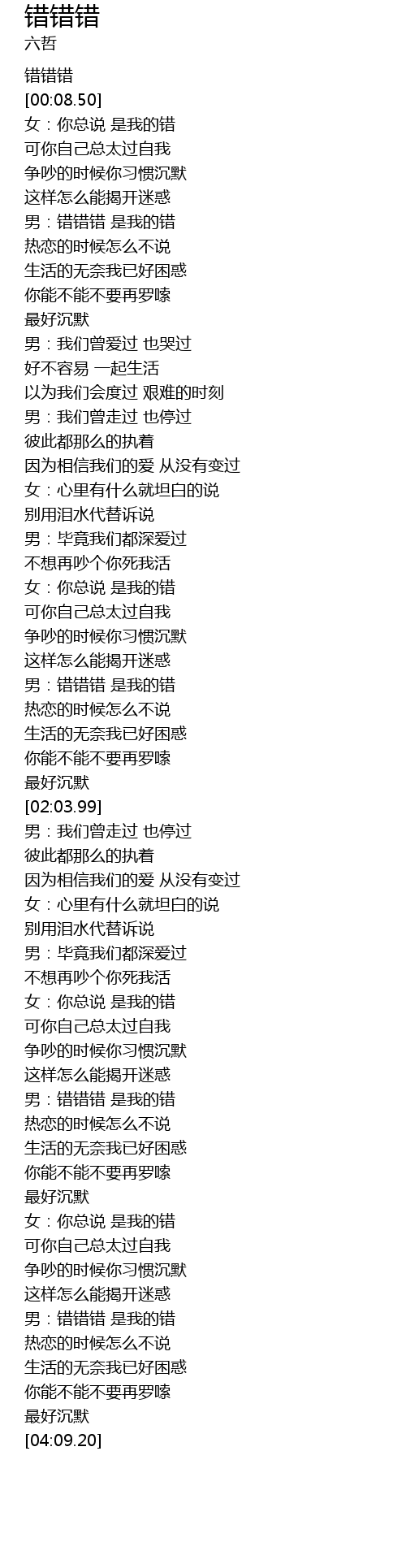 | [03:50.82] | 男:错错错 是我的错 |