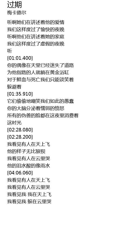 | [01:11.270] | 你的偶像在天堂已经迷失了道路 |