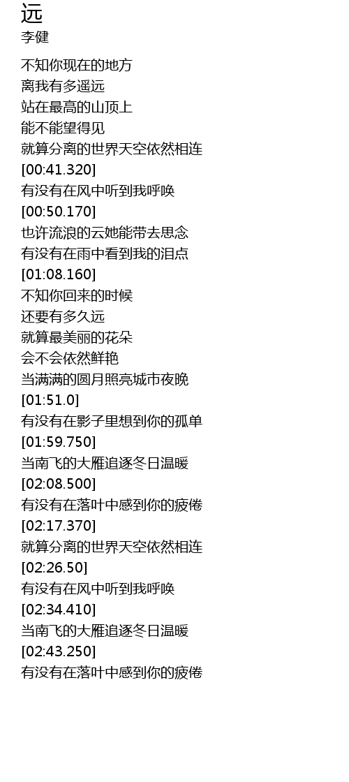 | [00:50.940] | yě xǔ liú làng de yún tā néng dài qù sī niàn |