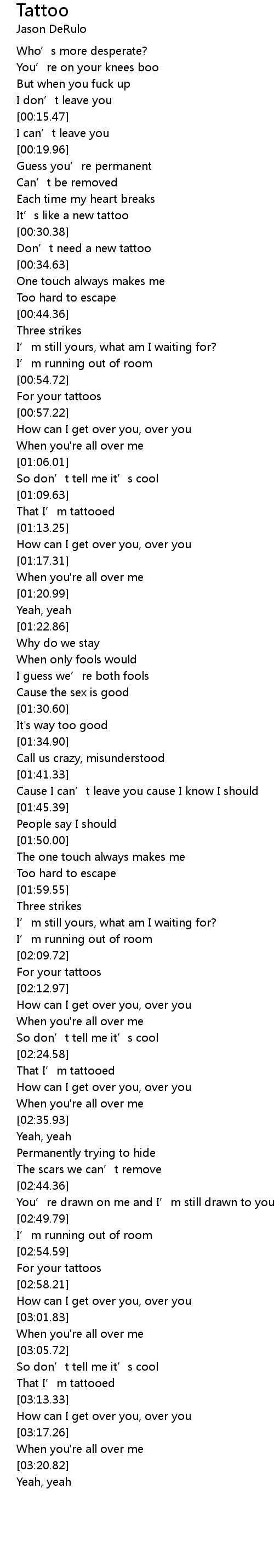 | [00:32.75] | Don' t need a new tattoo |