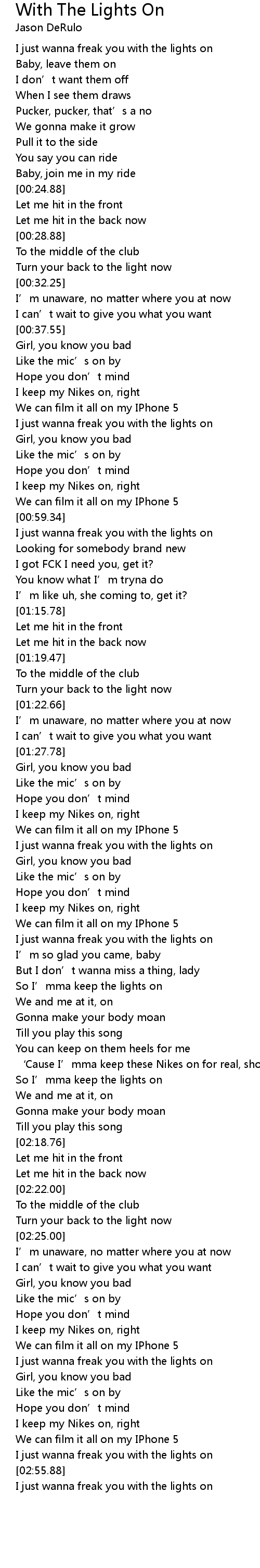 | [02:52.64] | I just wanna freak you with the lights on |